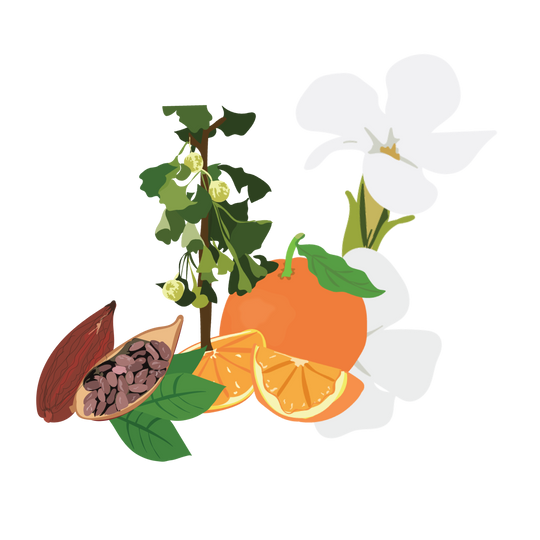 A proprietary blend in a base of 60% Cacao Dark Chocolate.